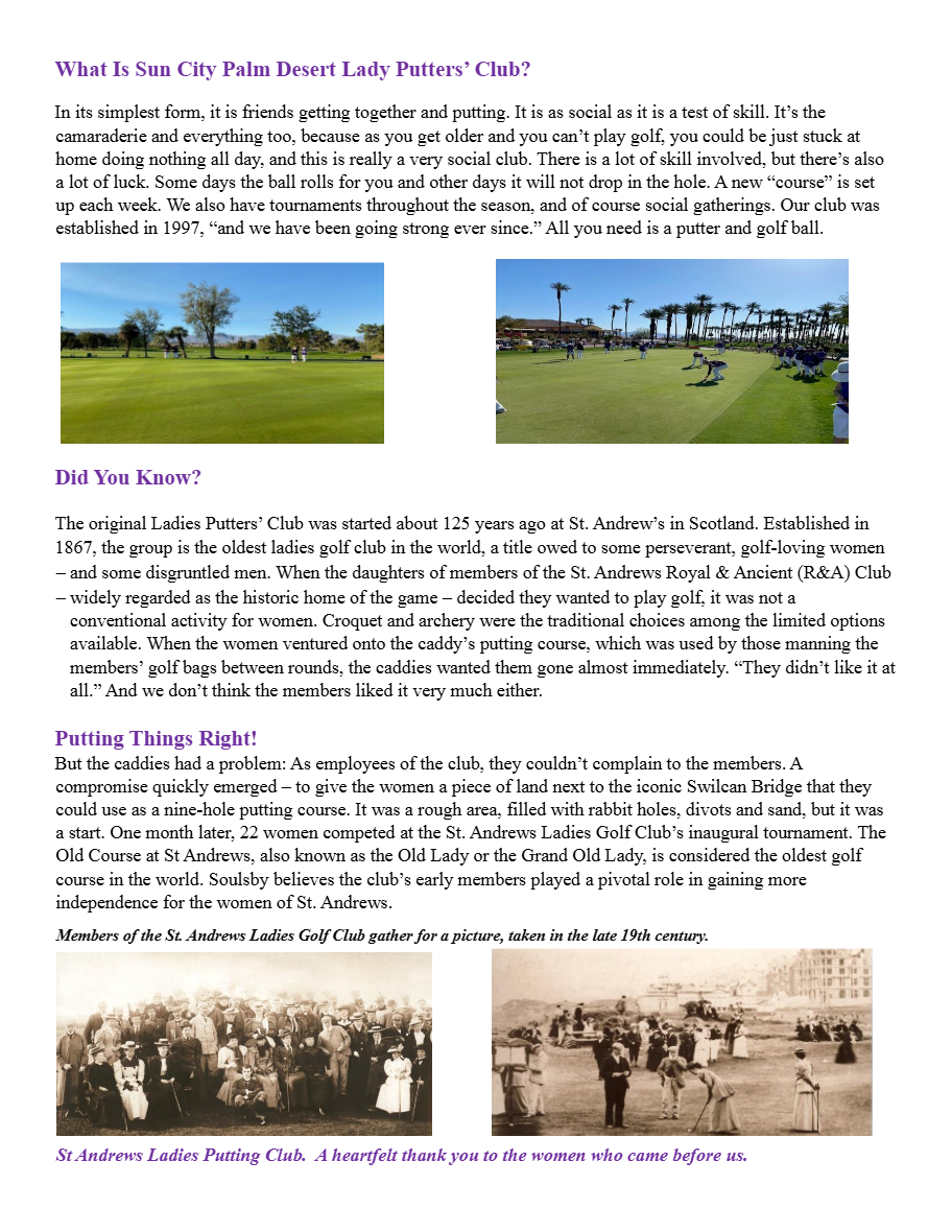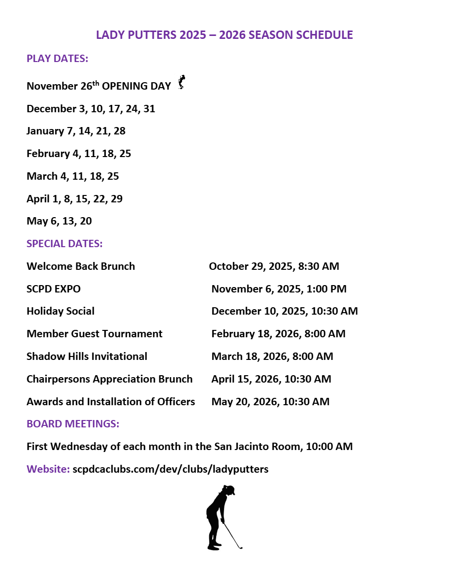 Member dues for the 2025–2026 season are $35 and cover the period from July 1 through June 30. Join the fun and improve your putting skills while being part of an engaging and welcoming club experience.